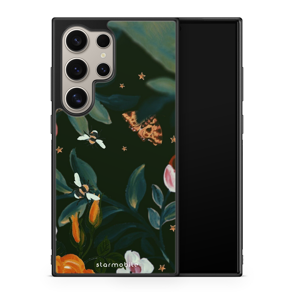 Cufundă-te într-o lume de mister și frumusețe cu husa "Mystic Night" din colecția Magic. Designul său elegant, cu frunze întunecate, flori delicate și accente de stele aurii, creează o atmosferă fermecătoare, perfectă pentru cei care iubesc magia nopții.